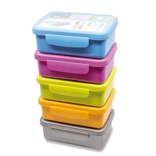 VÝHODY, * Originální čirá průhledka pro vložení vašich obrázků či fotografií, * Vyjímatelná dělicí přepážka, * Neobsahuje ftaláty, změkčovadla, BPA a BPS, * Pevné panty, které umožňují víčko zcela otevřít bez toho, aby se krabička překlopila, * Vhodná do myčky, ledničky, mrazničky a mikrovlnné trouby, * Pět barevných variant, * Možnost dokoupení náhradních dílů – barvy můžete kombinovat a vytvořit si tak velké množství barevných variant