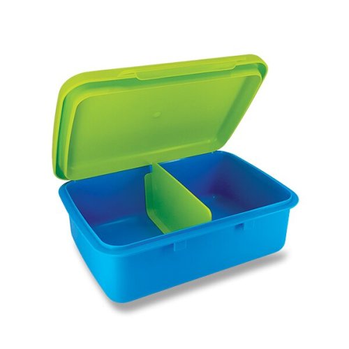 Svačinový box neobsahuje ftaláty, ani změkčovadla. Box je možné mýt v myčce nebo v něm ohřívat svačinky v mikrovlnce., Ke svačinovému boxu je možné objednat i NÁHRADNÍ DĚLÍCÍ PŘEPÁŽKU A ČIROU PRŮHLEDKU., ROZMĚRY: 18 X 13 X 6,5 CM, VÝHODY, * Originální čirá průhledka pro vložení vašich obrázků či fotografií, * Vyjímatelná dělicí přepážka, * Neobsahuje ftaláty, změkčovadla, BPA a BPS, * Pevné panty, které umožňují víčko zcela otevřít bez toho, aby se krabička překlopila, * Vhodná do myčky, ledničky, mrazničky a mikrovlnné trouby, * Možnost dokoupení náhradních dílů – barvy můžete kombinovat a vytvořit si tak velké množství barevných variant