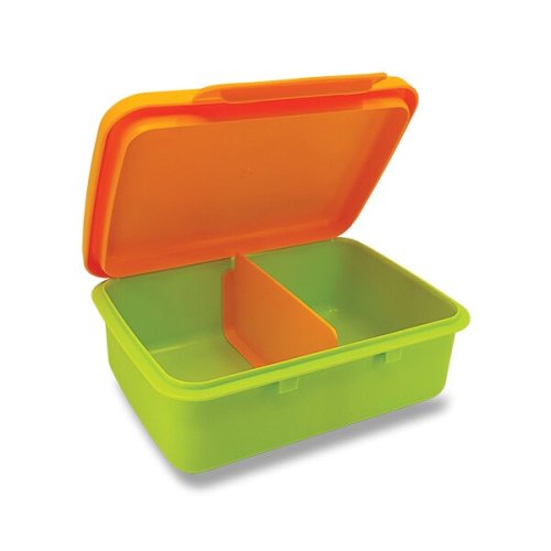 Svačinový box neobsahuje ftaláty, ani změkčovadla. Box je možné mýt v myčce nebo v něm ohřívat svačinky v mikrovlnce., Ke svačinovému boxu je možné objednat i NÁHRADNÍ DĚLÍCÍ PŘEPÁŽKU A ČIROU PRŮHLEDKU., ROZMĚRY: 18 X 13 X 6,5 CM, VÝHODY, * Originální čirá průhledka pro vložení vašich obrázků či fotografií, * Vyjímatelná dělicí přepážka, * Neobsahuje ftaláty, změkčovadla, BPA a BPS, * Pevné panty, které umožňují víčko zcela otevřít bez toho, aby se krabička překlopila, * Vhodná do myčky, ledničky, mrazničky a mikrovlnné trouby, * Možnost dokoupení náhradních dílů – barvy můžete kombinovat a vytvořit si tak velké množství barevných variant