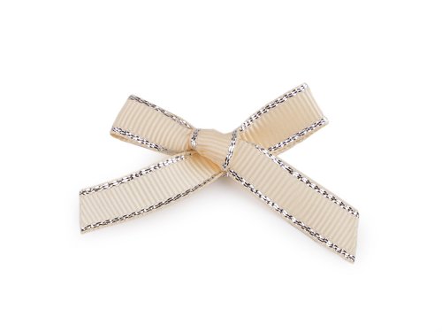 Svatební / dekorační rypsová mašlička s lurexovým okrajem - béžová světlá (10 ks)