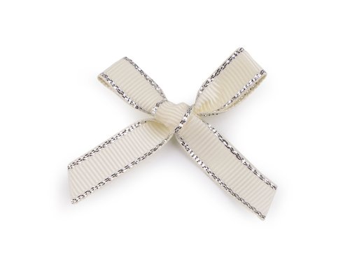 Svatební mašličky využijete na výrobu voniček i různých dekorací. Jsou pevné, uvázané z oboustranné rypsové stuhy široké 10 mm, která je po bocích protkaná lurexem. Dodají elegantní a zářivý nádech svatebčanům, ale i vašim jiným tvořivým projektům. Oceníte ji i jako skvělý detail na ozdobném balení dárků.