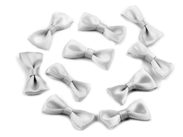 Saténová mašlička je vhodná k našití nebo nalepení. Můžete s ní ozdobit oděvy, podvazky, doplňky, čelenky do vlasů apod. Na některých kusech mohou být na zadní straně u spoje vidět zbytky lepidla.