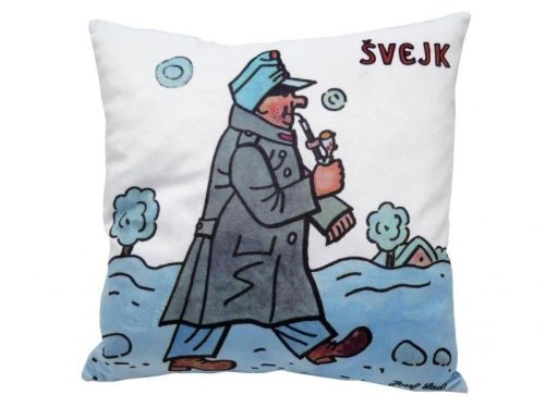 Měkký polštář s motivem dobrého vojáka Švejka od Josefa Lady, vhodný na cesty i jako dekorace. Materiál mikrovelur, obrázek tisk, náplň duté vlákno. Pratelný. Praní na 30°C, 100% polyester. Vyrobeno v ČR.