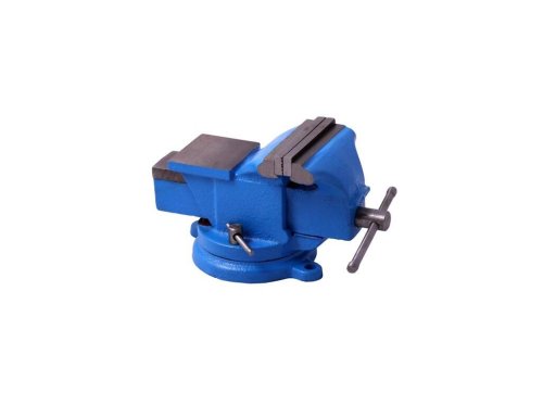Masivní svěrák s kovadlinkou z litiny, tvrzené čelisti. Otáčení svěráku pomocí otočného talíře, tělo a pohyblivé rameno odlité každé z jednoho kusu zaručuje, velkou odolnost a pevnost. Váha 7500g, max. rozevření 100 mm. EAN 8590804041566