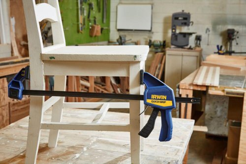 Jednoruční stolařská svěrka IRWIN® QUICK-GRIP® pro střední zatížení rovnoměrně rozloží až 136 kg trvalého upínacího tlaku. Je ideální pro aplikace krátkodobého přidržení a rychlého upnutí. Nové tlačítko QUICK-CHANGE™ nabízí snadno odnímatelné čelisti pro instalaci příslušenství nebo přeměnu v rozpěrku. Odnímatelné výkyvné čelisti a šetrné podložky - celoplošné podložky zajišťují rovnoměrné rozložení upínací síly. Jednoruční ovladač QUICK-RELEASE nový design úchytu a ovladače umožňuje jednoduché ovládání jednou rukou. Tepelně zpracovaný I profil z uhlíkové oceli s černým oxidovaným povrchem podporuje větší tlak s menším prohýbáním a flex pro mimořádnou odolnost.