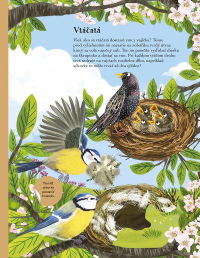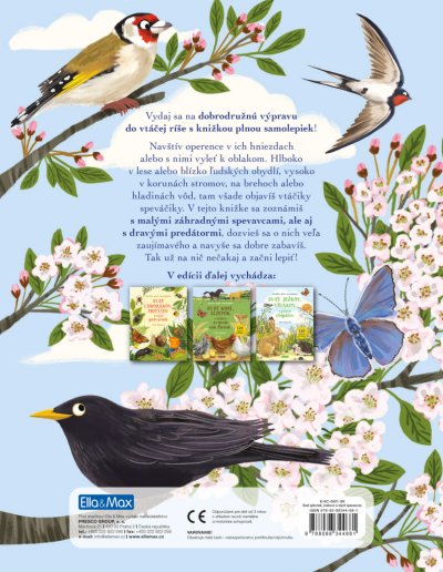 Vydejte se na dobrodružnou výpravu do ptačí říše s knížkou plnou samolepek! Navštivte opeřence v jejich hnízdech, vydejte se s nimi do oblak… Hluboko v lese či poblíž lidských obydlí, vysoko v korunách stromů, na březích nebo hladinách vod, tam všude objevíte ptáčky zpěváčky. V téhle knížce se seznámíte s malými zahradními pěvci, ale i dravými predátory, dozvíte se o nich řadu zajímavostí, a navíc si užijete spoustu zábavy při dotváření 11 překrásných přírodních scenerií za pomoci roztomilých samolepek.