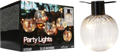 Světelný řetěz LED PARTY 10 žárovek, celková délka 6,8 m, vzdálenost žárovek 20 cm, přívodní kabel 5 m, barva LED: teplá bílá, 230 V, IP 444 adaptér