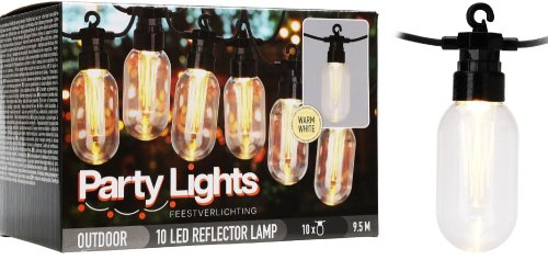 Světelný řetěz LED PARTY 10 žárovek, celková délka 9,5 m, vzdálenost žárovek 50 cm, přívodní kabel 5 m, barva LED: teplá bílá, 230 V, IP 444 adaptér