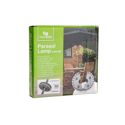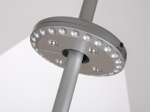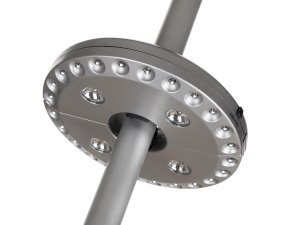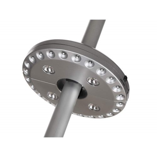 Led svítilna pod slunečník umožňuje pohodlné osvětlení prostoru pod slunečníkem i při večerním posezení. Lampa je vybavena 4 + 20 výkonnými LED diodami s různými možnostmi nastavení sepnutí. Lampa je kompaktní a lehká s praktickými háčky pro snadné zavěšení. Možno také uchytit samosvorným pružinovým mechanismem přímo na nosnou tyč slunečníku o průměru 32 - 44 mm. Provoz zajišťují 4 x AA baterie, nejsou součástí výrobku.