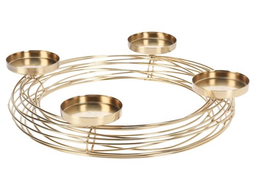 Svícen kov 355x320x70 mm Adventní kulatý na 4 čajové svíčky, zlatá