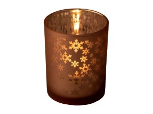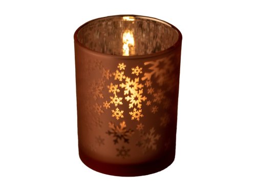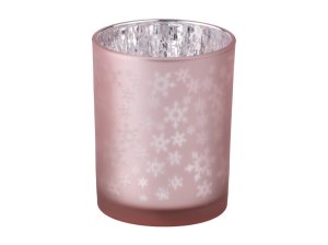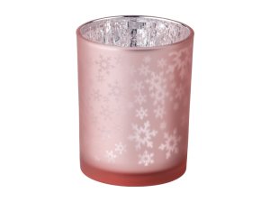 Svícen sklo 100X125 Stínohra vločky na čaj. svíčku mix, růžová