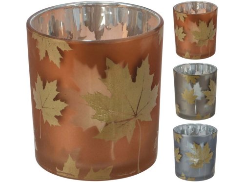 Elegantní skleněný svícen o rozměrech 70×80 mm s dekorativní stínohrou listů. Po zapálení čajové svíčky vytváří jemné světelné efekty a příjemnou atmosféru. Dostupný v mixu barev se zlatým akcentem. Ideální jako dekorace do interiéru nebo jako drobný dárek. Zboží je dodáváno v mixu. Doručované zboží je vybíráno náhodně a nelze vybrat konkrétní provedení.
