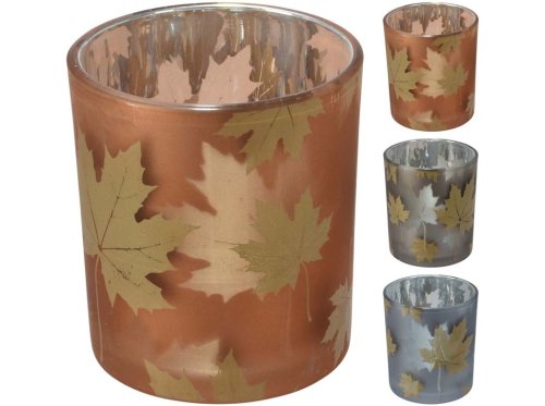 Dekorační skleněný svícen o velikosti 88×100 mm se stylovým motivem listů ve zlatém provedení. Po zapálení čajové svíčky vytváří krásnou stínohru a příjemné světelné efekty. Nabízen v mixu barev, vhodný jako podzimní či celoroční dekorace nebo elegantní dárek. Zboží je dodáváno v mixu. Doručované zboží je vybíráno náhodně a nelze vybrat konkrétní provedení.