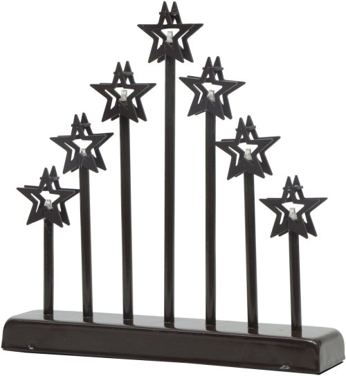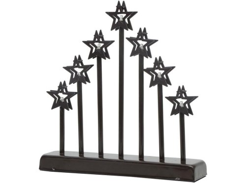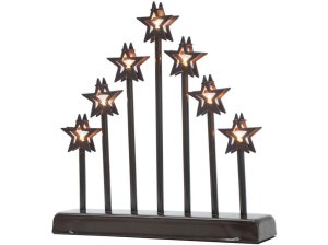 Vánoční svícen s hvězdičkami navodí ve vaší domácnosti kouzelnou atmosféru Vánoc. Je opatřený 7 LED světýlky a je vhodný pro umístění na stůl, poličku nebo parapet.
