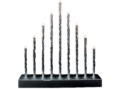 Svícen vánoční 9 svíček LED, teplá BÍ, Al + ABS STŘ, 26 x 24,8 x 5,7 cm, 3 x AA baterie.