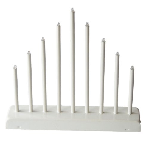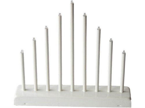 rozměry (D x V x Š): 26 x 31 x 5,5 cm napájení: 2 x tužková AA baterie, není součástí balení materiál: kov barva: bílá 9 svíček barva světla: 3000 K (teplá bílá)