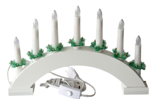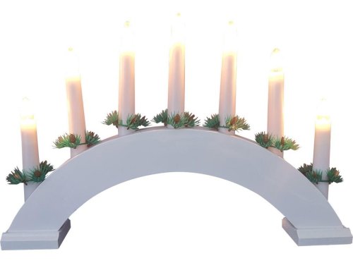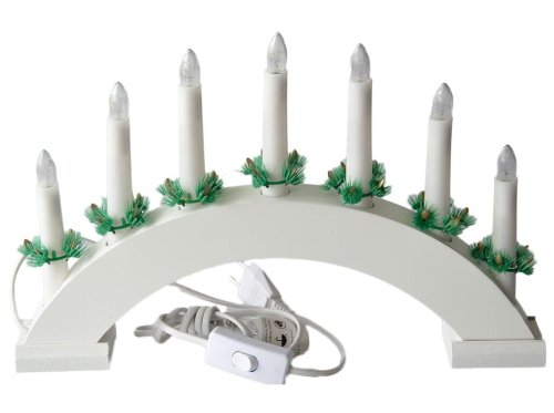 Vánoční svícen el. 7 svíček, teplá BÍ, oblouk, dřev. BÍ, do zásuvky.