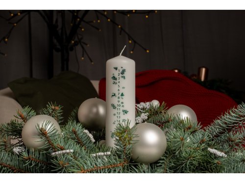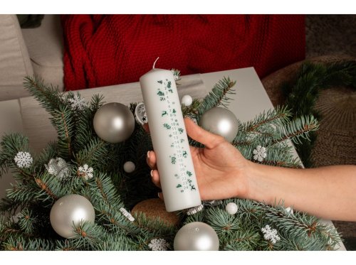Svíčka 50x200 mm s kalendářem Větvičky zelené