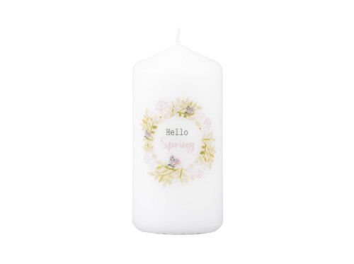 Svíčka 58x120 mm potisk jarní věnec, bílá