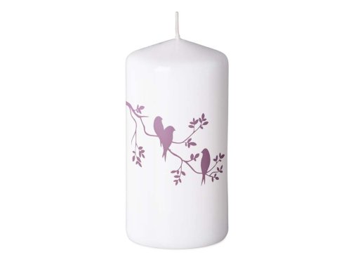 Svíčka 58x120 mm potisk ptáčci, bílá
