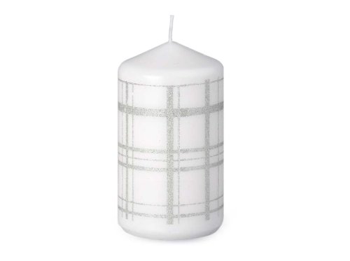Svíčka 68x120 mm Karo stříbrné, bílá