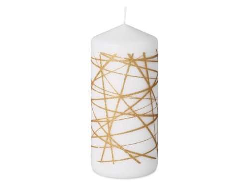 Svíčka 68x150 mm Glitrové čáry zlaté, bílá