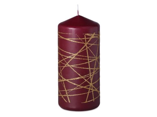 Svíčka 68x150 mm Glitrové čáry zlaté, bordó