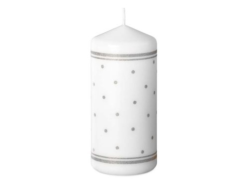 Svíčka 68x150 mm Puntíky glitr stříbrný, bílá