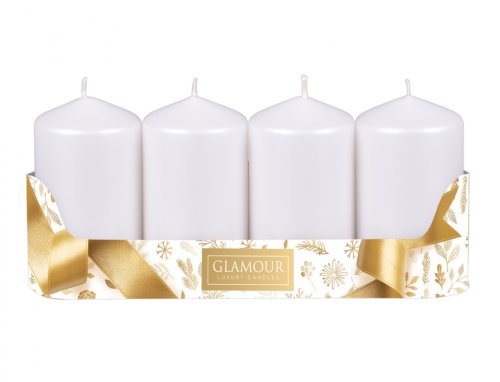 Sada adventních svíček se špičatou hlavou. Působivé metalické barevné odstíny podtrhuje matný povrch. Adventní věnec s nimi bude vypadat atraktivně a moderně. Doba hoření: 14 hodin. Rozměry: průměr 5cm, výška 9cm. Obsah balení: 4 ks svíček. Barva: bílá.