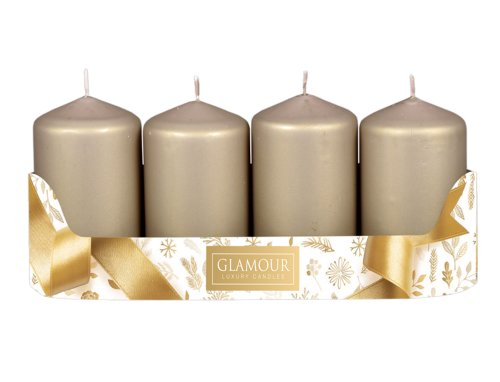 Sada adventních svíček válcového tvaru se špičatou hlavou. Adventní věnec ozvláštní krásnými metalickými barvami v matném provedení. Rozměry: průměr 5 cm, výška 9 cm. Doba hoření: 14 hodin. V balení jsou 4 ks svíček. Barva: tmavě béžová.
