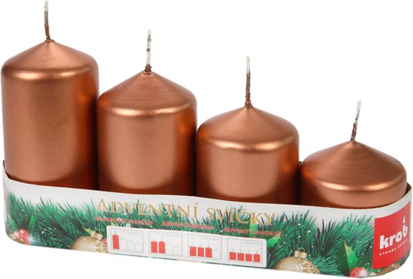 Svíčka adventní schody 50x60/75/90/105 mm - metalická měděná - 4 ks