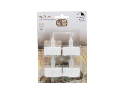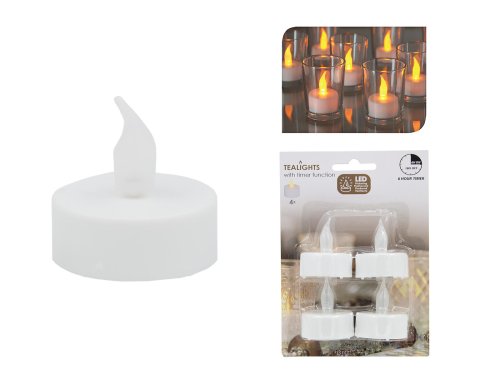 Svíčka čajová LED pr. 3,5 cm BÍ (4 ks) s bateriemi, časovačem.