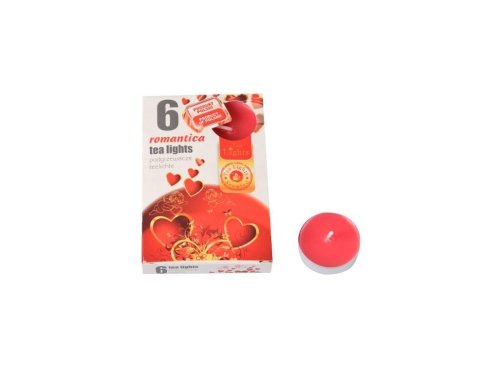 aroma/dekor: romantika doba hoření: 3-4 hod 6 ks Vonná čajová svíčka ROMANTIKA s příjemnou vůni po celou dobu hoření se hodí pro navození klidné atmosféry.