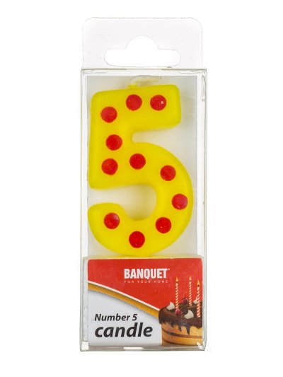 Svíčka narozeninová - číslo 5, velikost svíčky 5 x 3 cm, součástí svíčky je plastový bodec. Výrobek využijete na oslavě, zahradní párty, pikniku apod.