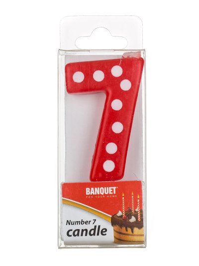 Svíčka narozeninová - číslo 7, velikost svíčky 5 x 3 cm, součástí svíčky je plastový bodec. Výrobek využijete na oslavě, zahradní párty, pikniku apod.