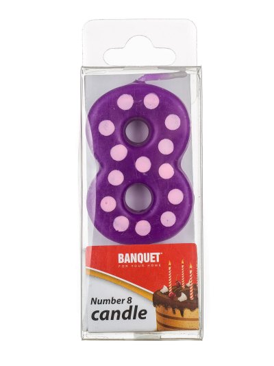 Svíčka narozeninová - číslo 8, velikost svíčky 5 x 3 cm, součástí svíčky je plastový bodec. Výrobek využijete na oslavě, zahradní párty, pikniku apod.