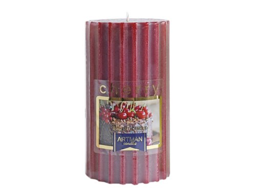 Vonná svíčka ve tvaru válce, originálně zdobená svislým žebrováním po celé délce. Vhodná jako účelná dekorace interiéru nebo pěkný dárek. Potěší milovníky jednoduchého, ale efektního zdobení. Voní sladce po třešních a evokuje tak příjemné pocity, které jsou spojeny s touto surovinou. Doba hoření: 73 hodin. Rozměry: průměr: 8 cm, výška: 14 cm. Barva: červená.