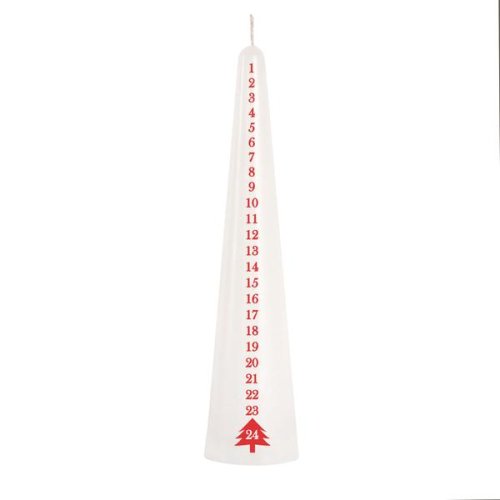 Svíčka kónická adventní o délce 25 cm navodí ve Vašem domově příjemnou atmosféru. Na svíčce jsou uvedeny kalendářní dny, které mizí postupným hořením svíčky. Nezapomeňte prosím dbát na svou bezpečnost a držte se na svíčce uvedených bezpečnostních piktogramů. Materiál parafín. Barva bílá.