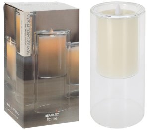 svíčka LED pr. 10 x 20 cm, blikající plamen, ve skle, IVORY