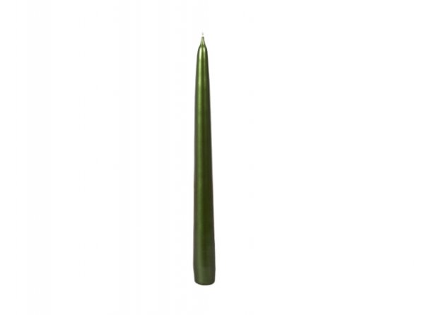 Lesklá kónická svíčka zelené barvy. Výška: 24 cm.