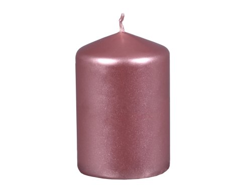 Svíčka ve tvaru válce s hladkým povrchem, v provedení metalický lesk. Ve vánočních dekoracích a upoutá pozornost. Doba hoření: 30 hodin. Rozměry: průměr 6 cm, výška 9 cm. Barva: růžovozlatá.