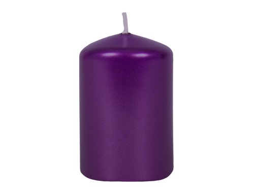 Svíčka ve tvaru válce s hladkým povrchem, v provedení metalický lesk. Ve vánočních dekoracích a upoutá pozornost. Doba hoření: 30 hodin. Rozměry: průměr 6 cm, výška 9 cm. Barva: tmavě fialová.