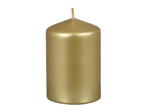 Svíčka ve tvaru válce s hladkým povrchem, v provedení metalický lesk. Ve vánočních dekoracích a upoutá pozornost. Doba hoření: 30 hodin. Rozměry: průměr 6 cm, výška 9 cm. Barva: zlatá.