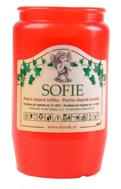 Plastová hřbitovní svíčka s parafínovou náplní 150g se zvýšeným obsahem oleje pro dlouhou dobu hoření. Je vyrobená z kvalitního parafínu a díky použití speciálního knotu zajišťuje dokonalé vyhoření náplně bez zakouření skla. Doporučujeme používat pouze jako náhradní náplň k hřbitovním sklům nebo do hřbitovních luceren. Doba hoření svíčky je cca 54 hod. Doba hoření je závislá na okolní teplotě a povětrnostních podmínkách. Svíčku zapalujte pouze na nehořlavé podložce a vloženou do hřbitovního skla nebo lucerny. Svíčka je určená pro venkovní použití. Svíčka je vysoká 10 cm, průměr 5.5 cm a hoří až 54 hodin. EAN 8591570017250