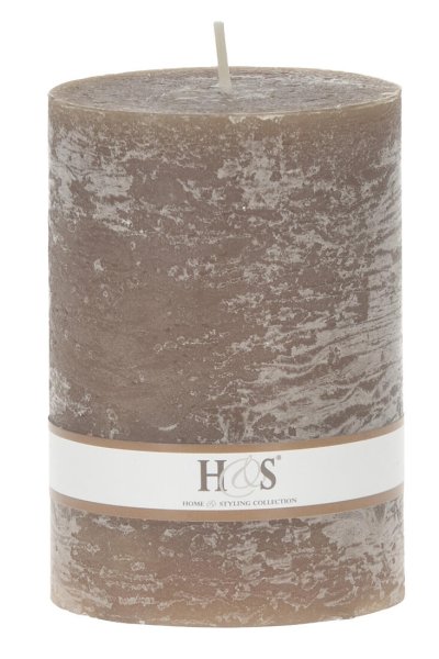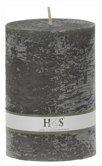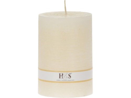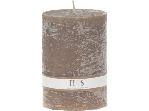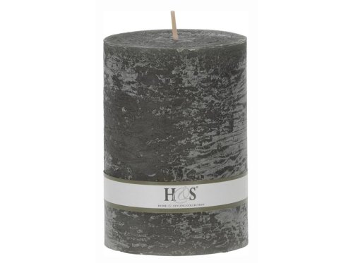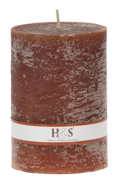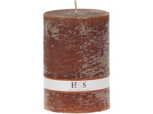 Jednobarevná svíčka ve tvaru válce s rustikálním povrchem.