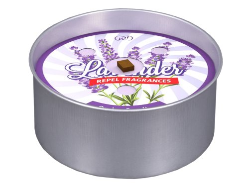 Vonná svíčka proti hmyzu s vůní levandule je zalitá v kovové plechovce a spojuje repelentní účinek s jemnou aromaterapií, která pomáhá odpuzovat hmyz a zároveň vytváří klidnou a uvolňující atmosféru při venkovním i vnitřním použití. Levandule je ceněná pro své zklidňující a harmonizační účinky, díky nimž je svíčka ideální pro večerní relaxaci na terase, balkoně nebo při otevřeném okně. Svíčka má litou náplň s rovnoměrným hořením. Doba hoření: 8 hodin. Hmotnost náplně: 170 g. Rozměry: průměr 10 cm, výška 5 cm. Balení: kovová plechovka. Barva: stříbrná.