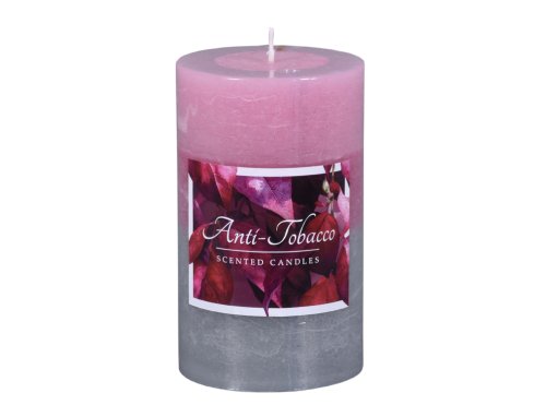 Dekorativní rustikální svíčka s vůní Anti Tobacco přináší svěží aroma, které neutralizuje nežádoucí pachy a provoní interiér čistou vůní. Tříbarevné provedení s efektním přechodem tónů působí elegantně a decentně. Vhodná pro celoroční použití i jako doplněk dekorací. Hoří rovnoměrně až 65 hodin. Rozměry: průměr 7 cm, výška 12 cm. Barva: růžovošedá.