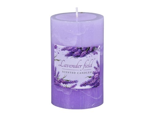 Dekorativní rustikální svíčka s vůní levandule vytváří harmonickou atmosféru a navozuje pocit klidu. Kombinace tónů v odstínech fialové a bílé podtrhuje její jemný vzhled. Vhodná pro celoroční použití a doplnění interiérových dekorací. Hoří rovnoměrně až 65 hodin. Rozměry: průměr 7 cm, výška 12 cm. Barva: fialová.