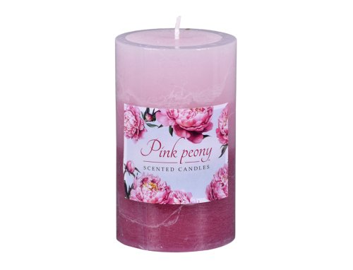Dekorativní rustikální svíčka s vůní růžové pivoňky provoní interiér jemným květinovým aroma a vytváří romantickou atmosféru. Tříbarevné provedení s přechodem růžových odstínů zdůrazňuje její jemný charakter. Vhodná pro celoroční použití a doplnění interiérových dekorací. Hoří rovnoměrně až 65 hodin. Rozměry: průměr 7 cm, výška 12 cm. Barva: růžovofialová.