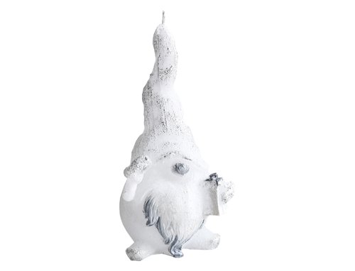 Figurální svíčka v podobě vánočního skřítka s čepicí. Šířka: 8 cm, výška: 15 cm.
